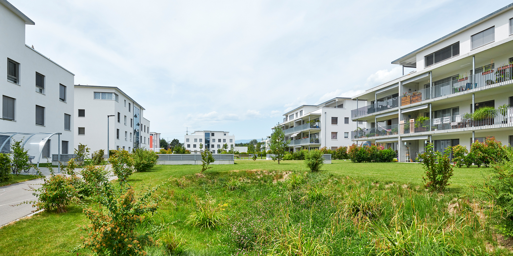 Bei der Wohnüberbauung «Lättere» in Zollikofen entstehen unter der Bauherrschaft der vorsorgestiftung vsao zehn Neubauten mit insgesamt 145 Miet- und Eigentumswohnungen. Mit charmanten Studios, 2½-, 3½- sowie grosszügigen und familienfreundlichen 4½- und 5 ½-Zimmerwohnungen entsteht ein interessanter Wohnungsmix. Grosszügige Loggias und Terrassen laden zum Verweilen und Geniessen ein und runden das ruhige Wohnen in der Überbauung «Lättere» ab. |